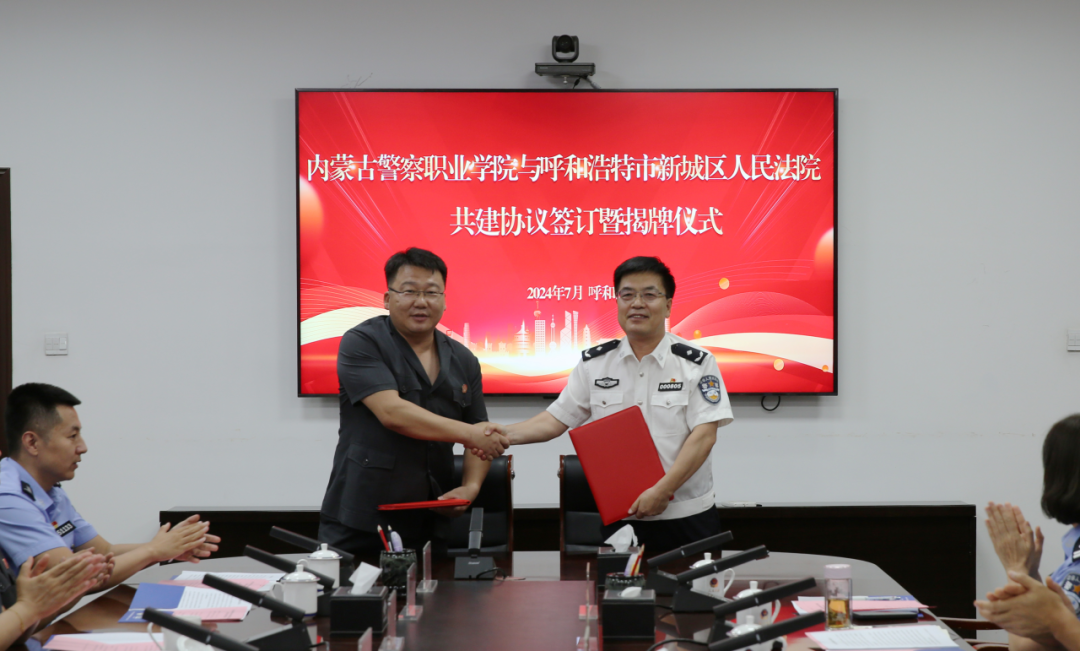 为认真贯彻落实中办、国办印发《关于加强新时代法学教育和法学理论研究的意见》精神,进一步深化“协同育人”合作机制,加强学院与法院之间的交流合作,推动法学教育与司法实践共同发展,7月16日下午,内蒙古警察职业学院与呼和浩特市新城区人民法院共建协议签订暨揭牌仪式在学院隆重举行。内蒙古警察职业学院党委副书记、院长李永林,学院党委委员、副院长、二级巡视员郭志忠,呼和浩特市新城区人民法院党组副书记、副院长何玉山,...