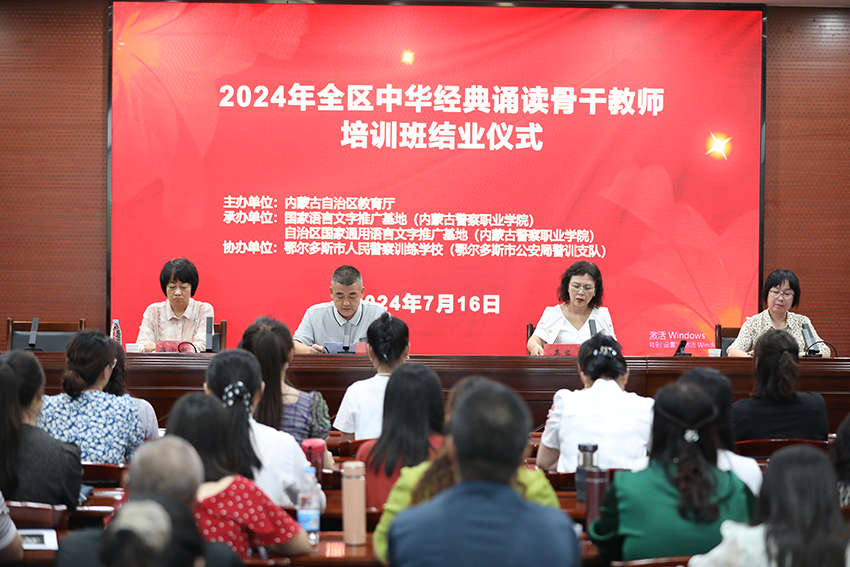 7月12日至7月16日,为期5天的2024年全区中华经典诵读骨干教师培训班在鄂尔多斯市人民警察训练学校圆满结业。来自全区各盟市中小学的73名中华经典诵读骨干教师参加了本次培训。明确导向精心谋划推动专题培训提质增效本次培训旨在深入贯彻习近平新时代中国特色社会主义思想和党的二十大精神,全面落实教育部、国家语委《中华经典诵读工程实施方案》。自治区教育厅高度重视,厅语言文字应用管理处处长包革命出席开班仪式,结合全区经典诵读工作实际,...