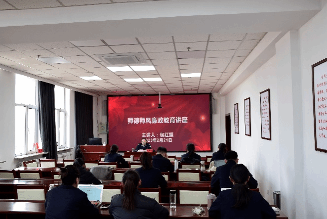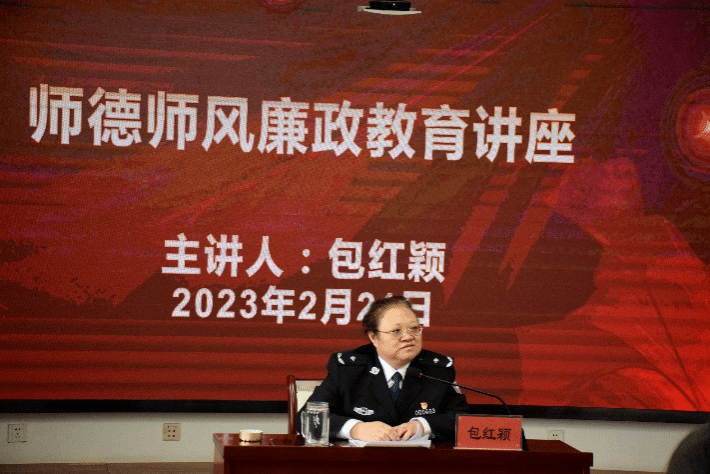 为加强新入职教师师德师风修养,坚定理想信念,形成良好的职业道德与敬业精神,2023年2月21日下午,我院举办第十一期(2023年第五期)“北疆警苑大讲堂”活动。本次活动由学院党委委员、纪委书记包红颖主讲师德师风廉政教育专题。