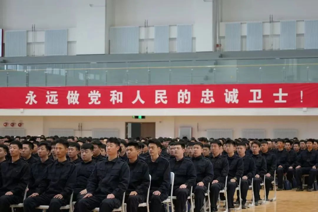 开班首日,一面鲜红的临时党支部旗帜在队列前猎猎作响。从“习近平新时代中国特色社会主义思想”到“公安‘忠诚’教育”,从宪法宣誓到英模事迹宣讲,理论课堂成为新警们叩问初心的起点。全国公安系统二级英雄模范刘洪波的事迹报告会现场,学员们屏气凝神,当听到他说“群众的事再小也是大事”,那一刻,新警们真正懂得了警徽的份量。