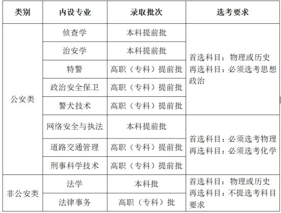 (三)专科公安专业:刑事科学技术、道路交通管理、政治安全保卫、特警、警犬技术;