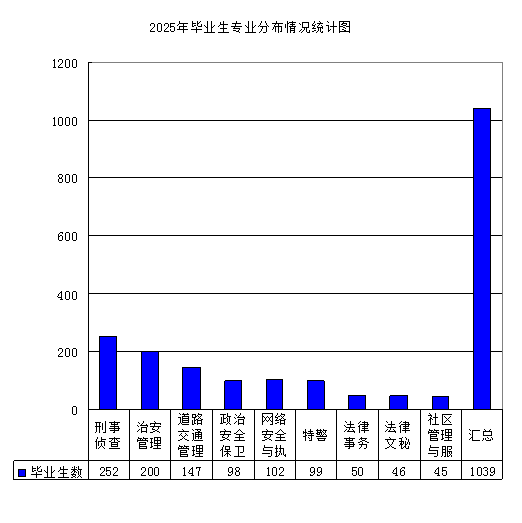 我院2025届毕业生共计1039人,其中公安类专业毕业生898人,非公安类专业毕业生141人,男生804,女生235人,男女生比例为3.42:1。(见表1)