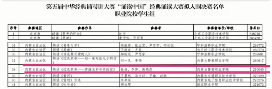 2023年7月张杨、李伟、高熙然同学朗诵作品《红色家书——黄继光和母亲的信》,刘一凡、李伟朗诵作品《红色家书——赵一曼写给儿子的一封信》进入第五届中华经典诵写讲大赛"诵读中国"经典诵读大赛全国决赛,决赛将于11月进行。