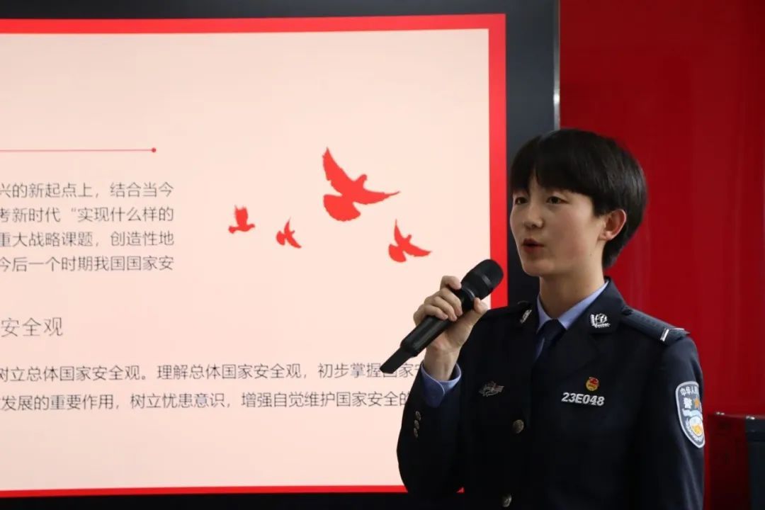 活动中,来自我院青协的徐进、陈钰两位同学围绕总体国家安全观的概况、国家安全的重要性及国家安全相关的法律法规进行讲解,同时也介绍了身边危害国家安全的行为和如何维护国家安全。朗诵社团的何佳洺、刘一凡同学分别以《维护北疆安全,书写藏蓝青春》和《用忠诚践行使命,以担当坚守初心》为主题进行演讲,他们深情讲述公安队伍中的干警无私奉献,兢兢业业,弘扬“蒙古马”精神,守卫祖国北疆动人的事迹。