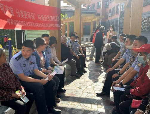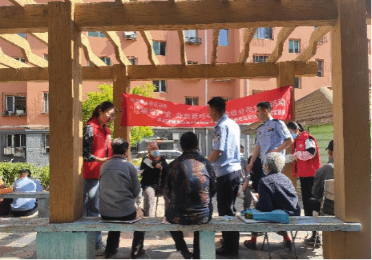 同学们和社区工作人员深入牛街二区,采取发放宣传单、悬挂宣传横幅等方式,向来往的居民群众普及预防网络电信诈骗知识。