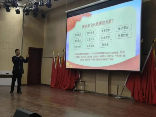 主讲人向同学们介绍了国家安全的内容、形式、重要性以及维护国家安全的必要性,推动总体国家安全观深入人心,落地生根,引导学生挺膺担当时代新人,共筑国家安全防线。宣讲现场同学们专心聆听、积极互动、感触颇深。