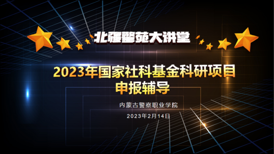 为助力我院内涵式发展,进一步提升我院教师的科研能力和水平,2月14日,我院组织2023年第二期“北疆警苑大讲堂”——国家社科基金科研项目申报辅导。本次讲座采用现场辅导与线上腾讯会议直播的方式同步进行,我院专兼职教师以线上线下相结合的方式聆听了讲座。我院特别邀请中国人民公安大学犯罪学学院院长、教授、博士生导师靳高风和中国人民公安大学治安学院副教授、硕士研究生导师张李斌为教师进行讲座辅导。本次活动由教务处副处长武静主持。