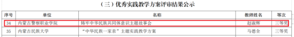 我院政治理论教学部四名教师提交自治区高校铸牢中华民族共同体意识课精品示范课程、优秀教学案例、优秀实践教学方案、教学资源包等相关7个项目参加评比,6个项目斩获佳绩,其中政治理论教学部副主任赵淑辉荣获两项三等奖,政治理论教学部教师朱广芹博士荣获三等奖,政治理论教学部教师刘兰荣获两项二等奖,政治理论教学部教师秦晓慧获三等奖。