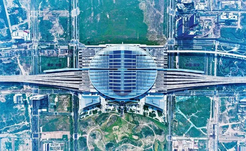 京雄城际铁路雄安站站顶分布式光伏电站总装机容量6000千瓦,站顶铺设1.77万块、4.2万平方米多晶硅光伏组件,电站采用自发自用、余电上网模式,自2020年12月正式并网发电以来,已累计发电超过1000万千瓦时。图为2022年9月9日拍摄的京雄城际铁路雄安站。 新华社记者 邢广利/摄