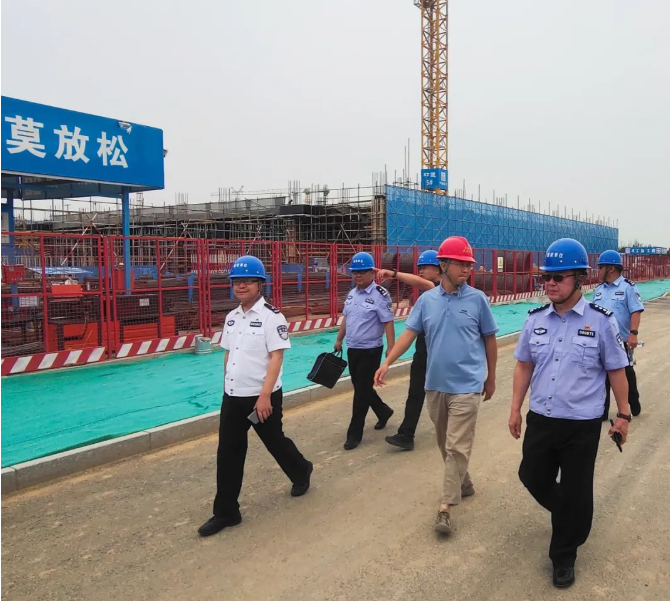 2022年7月27日上午,学院党委书记苏和生,党委副书记、院长李永林深入内蒙古警察职业学院新校区专题调研项目建设情况。公安厅警务保障总队二级高级警长武明,学院办公室主任陈超,后勤处处长乔永恒、副处长张伟陪同调研。