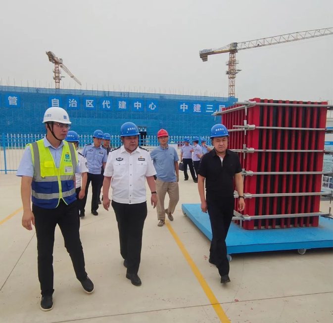 苏和生一行听取了建设单位对相关情况的汇报,详细询问了施工技术标准、地下管网建设、校园景观规划、安全管理与疫情防控等方面的情况。随后来到新校区体育馆、图书馆、学生宿舍、教职工公寓、食堂、教学楼等建设工地,详细了解工程计划,实地查看施工进展。苏和生表示,项目开工建设三个月以来进展迅速,各建筑单体正在有条不紊进行施工,部分建筑接近封顶,新校区已初具雏形,令人欢欣鼓舞,向所有参建人员的辛勤努力与付出表示衷心感谢。下一步,各参建单位要严格执行施工标准,强化施工质量监督检查,打造优质工程;抢抓有效施工期,上足施工力量,优化施工流程,在建设中全力做好安全防护和疫情防控工作,确保安全生产万无一失。