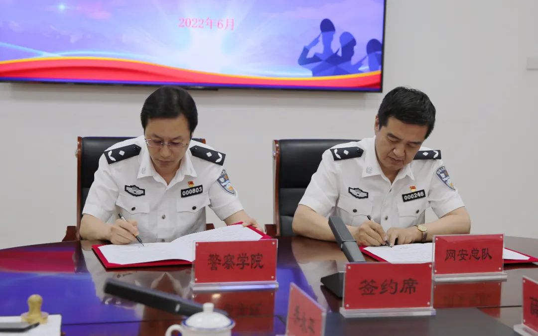 在与会人员的共同见证下,邢轶清副书记和忻海政委代表双方签署了《合作共建协议》,李永林院长和忻海政委为“内蒙古警察职业学院实践教学基地”“内蒙古自治区公安厅网络安全保卫总队教育培训基地”揭牌。