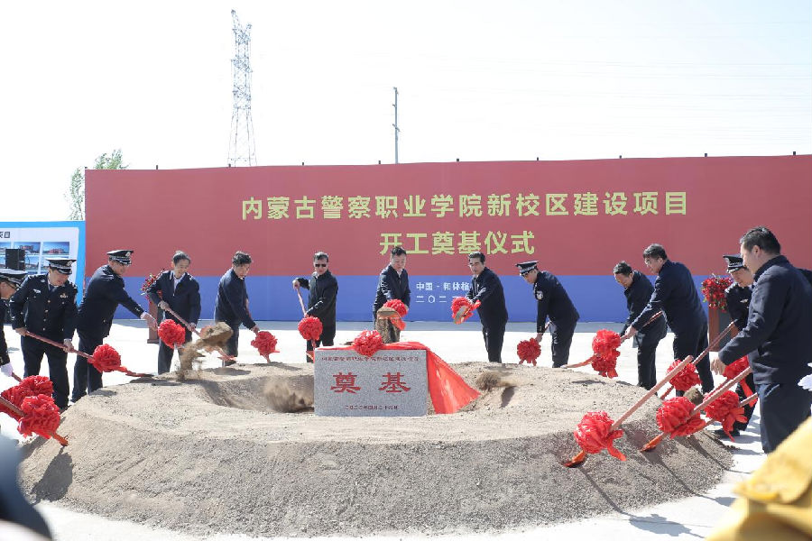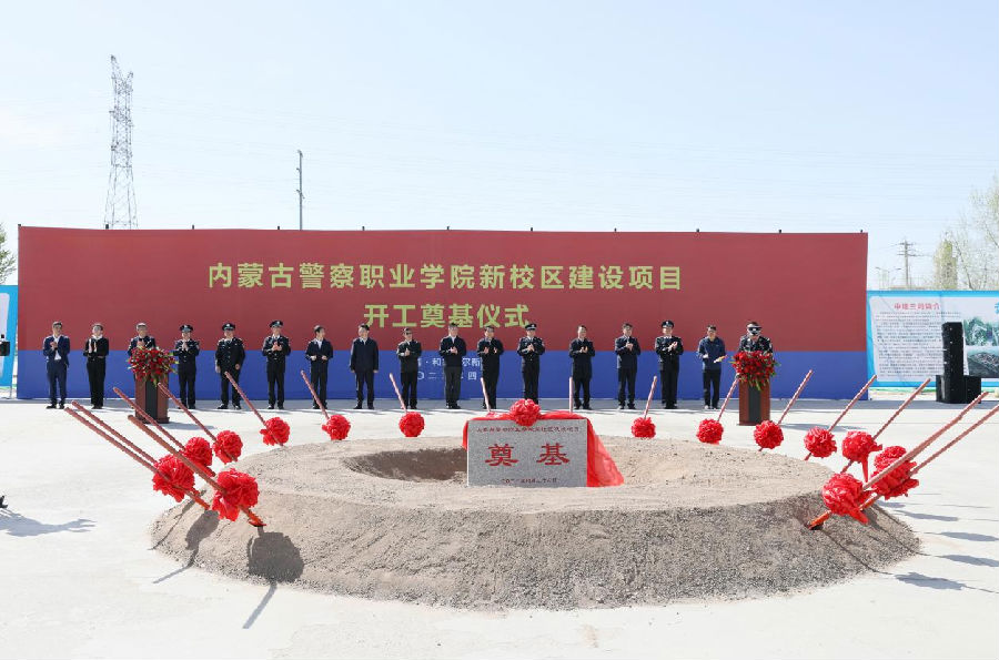 4月26日上午,内蒙古警察职业学院新校区建设项目开工奠基仪式在内蒙古和林格尔新区隆重举行。自治区党委常委、呼和浩特市委书记包钢,自治区党委常委、政法委书记丁绣峰,自治区党委政法委常务副书记李钢,自治区公安厅党委委员、副厅长张子军,自治区住房和建设厅党组成员、副厅长张鹤,自治区公安厅党委委员、政治部主任王斌,自治区公安厅党委委员、边境管理总队总队长刘同香,呼和浩特市政府党组成员、和林格尔新区党工委副书记、管委会主任朱建国以及公安厅、财政厅、教育厅、呼和浩特市政府、和林格尔新区管委会、和林格尔县等有关方面负责同志和学院领导班子成员,项管单位、施工单位代表出席仪式。内蒙古警察职业学院党委书记苏和生主持仪式。