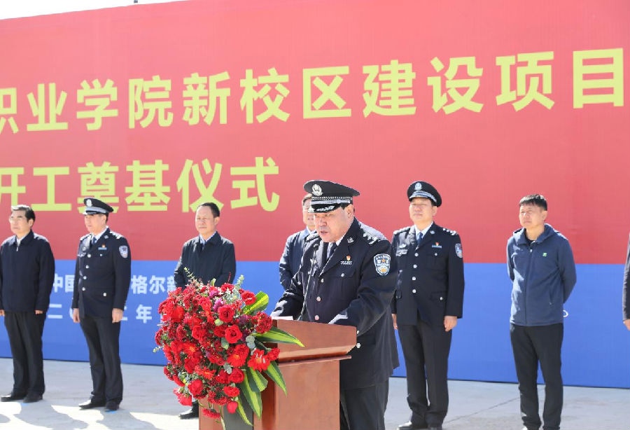 仪式上,张子军副厅长代表自治区副主席、公安厅党委书记、厅长衡晓帆发表致辞,向内蒙古警察职业学院新校区开工建设表示热烈的祝贺,向为工程开工付出辛勤劳动的同志们表示衷心的感谢。张子军副厅长指出,在自治区党委政府以及各级领导的高度重视和指导关怀下,学院和林格尔新校区建设项目,经过立项论证、规划设计、工程审批等一系列认真细致工作最终顺利开工建设,是自治区公安高等教育发展史上一个新的里程碑,为学院持续健康发展和实现“强校升位”工程奠定了更加坚实的基础,必将推动内蒙古公安教育和公安工作能力水平的极大提升,将会在“北疆安全稳定屏障建设”中发挥更大作用。