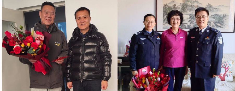 新桃旧符春意浓,万里河山岁月新。在新春佳节来临之际,学院党委书记苏和生,党委副书记、院长李永林以及院领导班子成员分别带队走访慰问了离退休干部代表,向他们致以节日问候与美好祝愿。慰问过程中,苏和生书记与离退休老同志进行亲切交流,关切地询问了他们的身体状况和日常生活情况,并代表学院党委感谢老同志为公安教育事业多年的付出与倾注。