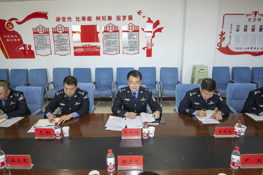 王钟琦对郭志忠一行表示欢迎,他表示,近些年来,内蒙警院与呼市公安局有很好的合作基础,特别是在今年的“大庆”安保期间,警院学生昂扬向上的精神面貌和令行禁止的纪律作风值得肯定,对于缓解基层警力不足的压力作出了突出贡献。内蒙警院具有丰富的智力资源和条件保障,呼市市局各队所具备公安实战经验和能力素质,共建常态化的“校局合作”机制可以实现优势互补,资源共享。双方要以此次座谈会为契机,细化框架协议具体事项。同时,希望今后双方能够加强沟通,扩大交流,实现合作共赢。