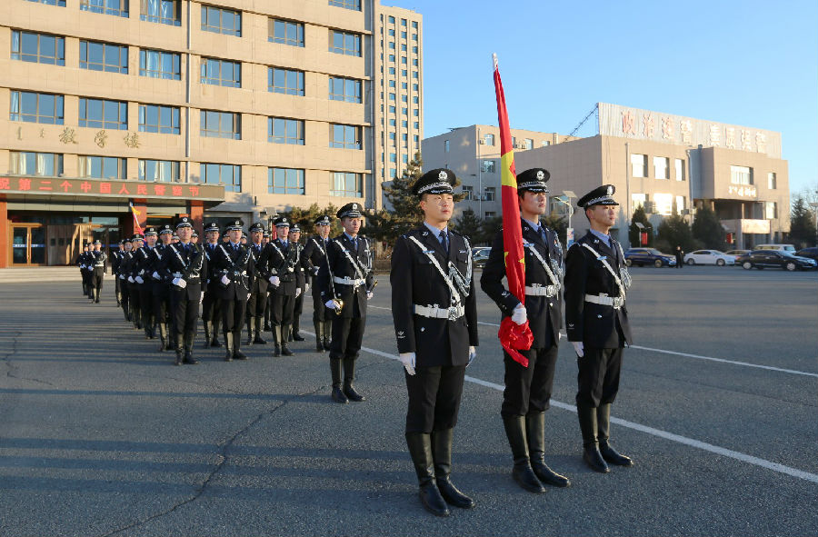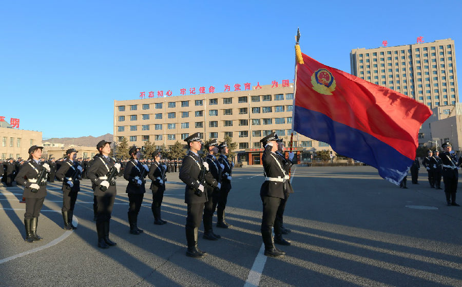 为了庆祝第二个中国人民警察节,1月10日上午8时30分,内蒙古警察职业学院举行升旗仪式,学院全体教职工和部分学生代表参加了升旗仪式并重温了入警誓词。学院党委书记苏和生领誓,学生处处长包明主持仪式。