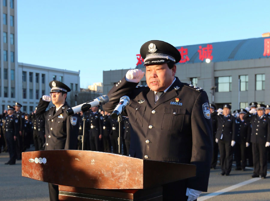 全体师生面向警旗,庄严宣誓:“我是中国人民警察,我宣誓:坚决拥护中国共产党的绝对领导,矢志献身崇高的人民公安事业,对党忠诚、服务人民、执法公正、纪律严明,为捍卫政治安全、维护社会安定、保障人民安宁而英勇奋斗!”全体警院人以铿锵有力的誓言表达始终牢记“对党忠诚、服务人民、执法公正、纪律严明”的训词精神、忠诚践行“为党育人、为国育才、为警铸剑”的初心使命、为祖国北疆培养“两个屏障”忠诚卫士的坚定决心。