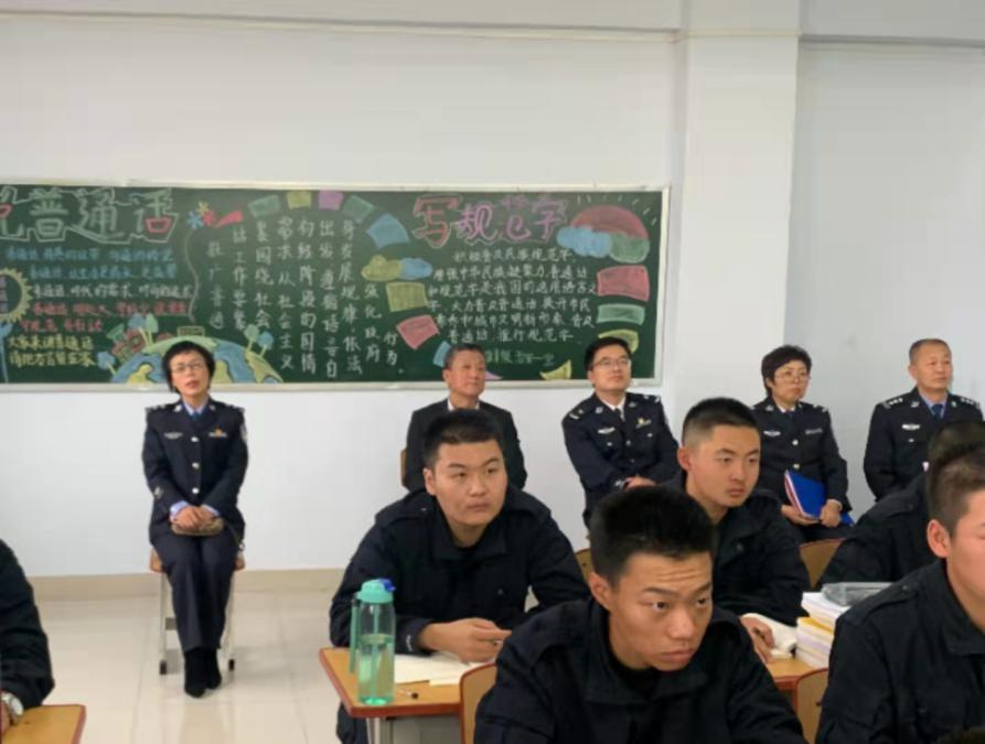 评估专家组深入教学课堂,对授课教师课件、学生书籍、室内标语等内容进行了细致检查,了解老师和同学们在课堂中用语用字规范情况。