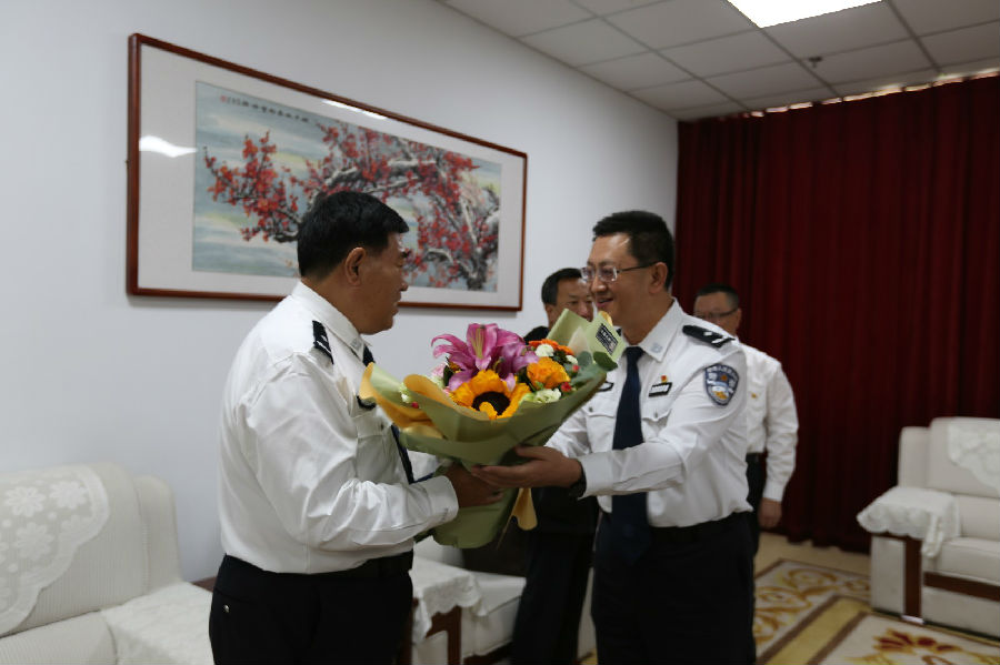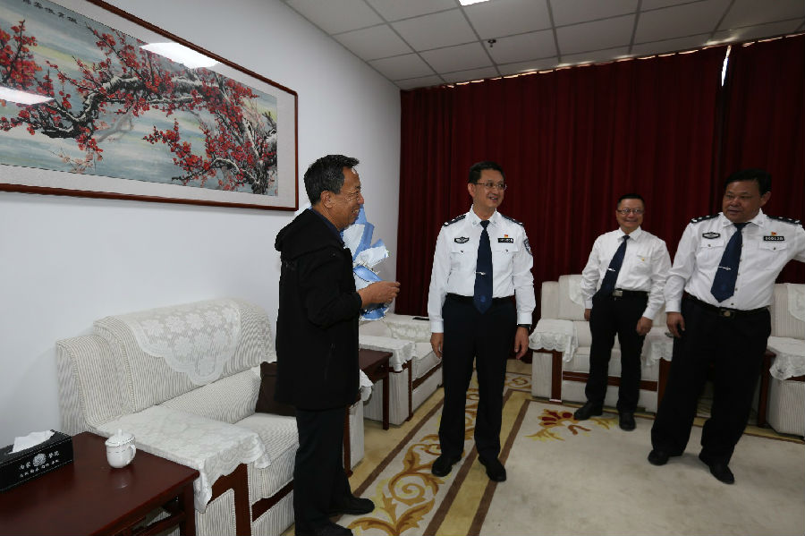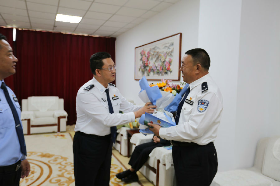 在第三十七个教师节来临之际,9月9日下午,自治区公安厅党委委员、政治部主任王斌在人事训练处处长邓忠的陪同下,深入警察职业学院看望慰问教师代表并进行座谈交流。座谈会由学院党委书记苏和生主持,党委成员、各部门负责人、教师代表和退休教师代表参加。