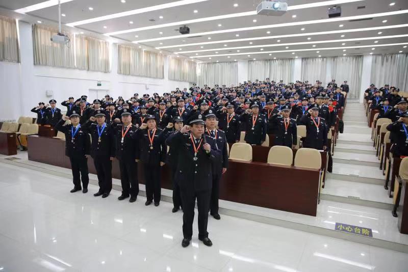 12月27日上午,内蒙古警察职业学院召开表彰大会暨举行从警荣誉纪念章首次颁授仪式,隆重表彰了2018年先进集体、荣立公务员三等功和公务员嘉奖人员以及70周年大庆安保维稳工作和专项工作获奖集体与个人,举行了从警35年、30年、20年、10年的荣誉纪念章首次颁授仪式。学院党委书记、院长赵永刚为民警代表颁授从警荣誉纪念章并讲话,学院党委委员、政委苏和生主持大会,党委委员、副政委窦丽萍,党委委员、纪委书记戴军分别宣读表彰决定,全院教职工参加大会。