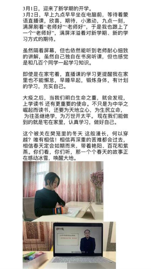教师们表示,疫情当前,虽不能到校上课,但会备好每一节课,保证授课质量,认真、高效地投入到线上课堂,履行好教师职责。
