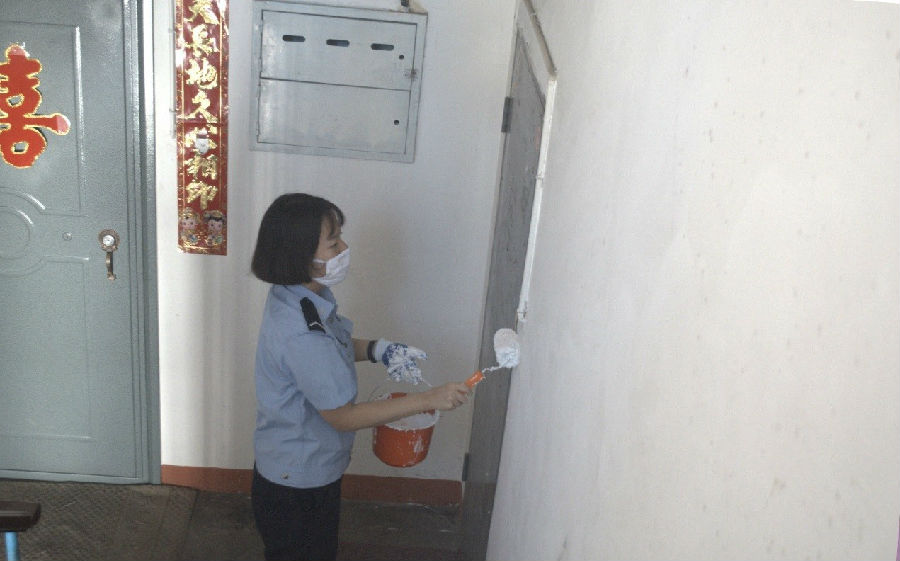 阳光正好,我院积极分子为山丹小区40个单元铲除“牛皮癣”。男女分工分组,有的喷水、润湿小广告;有的用铲子将其铲除;有的负责用涂料进行遮盖;有的负责清理地面。一上午有条不紊的将山丹小区的“颜值”从“丑女”变身为“白富美”,使得居民楼道焕然一新。