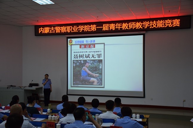 本次竞赛历时一个半月,分为预赛和决赛两部分。预赛由学院各教学系、部自行组织,共有64名青年教师参加。决赛由学院统一组织,决赛成绩采用百分制,由教案、学评教、现场教学三部分组成,三者权重分别为10%、20%、70%。教案评比环节中,参赛选手提交了参赛课程的完整教案,从教学提要、教学进度和教学总结三方面对教学目的、教学内容、教学形式、教学方法等进行了全方位的阐释,教案内容全面,制作精美,展现出参赛教师对授课内容的把握程度。学生评教是教务处督导科根据2018-2019学年专项教学检查中学生对教师的评价分数,评价内容涉及教师师德、教学效果等内容。现场教学环节中,参赛教师们采用理论讲解、案例分析等方法,广泛运用图片、视频、音频等多种媒体形式,将公安实践与教学内容融为一体,内容充实,思路清晰、严密,课堂节奏鲜明,教态自然大方,在短短20分钟内展示了良好的教学素养。