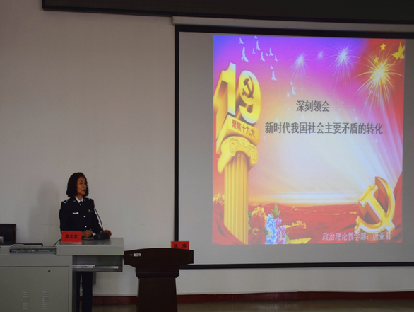 会上,唐亚君教授通过“不同阶段我国社会主要矛盾的回顾”“新时期我国社会主要矛盾转化的依据”“解决新时代我国社会主要矛盾的着力点”等三个方面进行了精彩的解读。授课内容丰富多彩、思想理论深刻透彻、讲述说理准确精炼。聆听报告的师生们纷纷表示,拓宽眼界,增长知识,受益匪浅,并会将学习成果融入到工作学习中去,用理论联系实际,做到内化于心,外化于行。