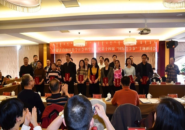 11月22日下午,内蒙古哲学社会科学界庆祝第十四届“国际哲学节”主题研讨会在呼和浩特召开。会议由内蒙古社科院、内蒙古社科联、内蒙古哲学学会主办。内蒙古社会科学院院长李春林主持。自治区人大常委会副主任吴团英、自治区政协副主席董恒宇作了主旨发言。自治区党委宣传部副部长高文鸿、内蒙古社会科学院党委书记刘少坤及专家学者百余人参会。本届研讨会共收到来自16个省区专家学者的应征论文87篇,其中评选出了一奖等4名、二等奖10名、三等奖15名。我院教师布和巴特尔提交的论文《论贺希格巴图关于人民幸福与苦难思想》荣获二等奖。该论文紧扣“哲学与新时代”主题,结合“人民对美好生活的向往”,阐述了贺希格巴图关于人民幸福与苦难的哲学思想,因其观点新颖,条理清晰,得到了评审组的肯定。
