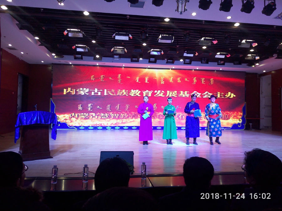 11月24日下午,由内蒙古民族教育发展基金会主办的首届“内蒙古草原文化传承之星”举行了颁奖典礼,我院蒙语授课教学部阿拉木斯教授荣获 “草原文化传承之星” 园丁奖称号。为发挥示范引领作用,传承弘扬中华优秀传统文化和草原文化核心理念,内蒙古民族教育发展基金会举办了本次评选活动。今年9月开展以来,全区民族教育系统各单位高度重视,认真组织宣传,经评审工作机构评选、推荐、公示、审核以及专家初审、终评和公示,最终在全区各级各类学校中评选出 “草原文化传承之星” 园丁奖30名(教师)和成才奖50名(学生)。