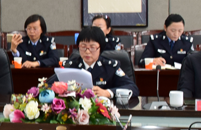 会上,陈瑛代表内蒙古警察职业学院,以“素质强警,锐意创新,开创警院‘七五’普法教育工作新局面”为题,就我院“七五”普法开展情况向检查组作汇报。学院特色鲜明的警营法治建设和“七五”普法工作得到了与会领导的一致好评。
