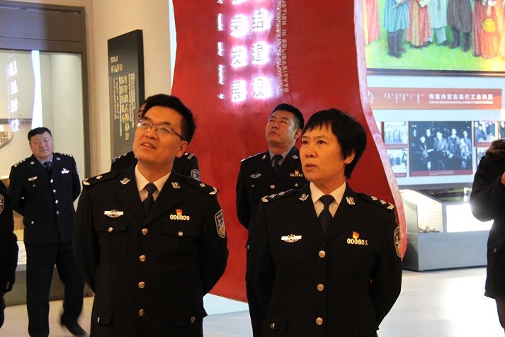 在乌兰夫同志纪念馆,办公室党支部全体党员民警面对鲜红的党旗,庄严地举行了重温入党誓词活动。铿锵有力的誓言,表达了他们对党、对祖国无限的忠诚。