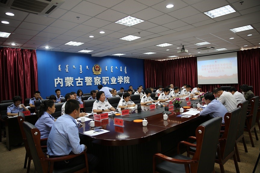 9月8日,由自治区党委宣传部大学处处长孙国铭,自治区文明办未成年人处调研员李强,自治区教育厅基础教育处调研员刘莎英、蒙文教材编审办审定审查科科长苏日嘎拉图组成的自治区文明校园创建工作考评组莅临内蒙古警察职业学院就首届自治区文明校园创建工作情况进行考察测评。