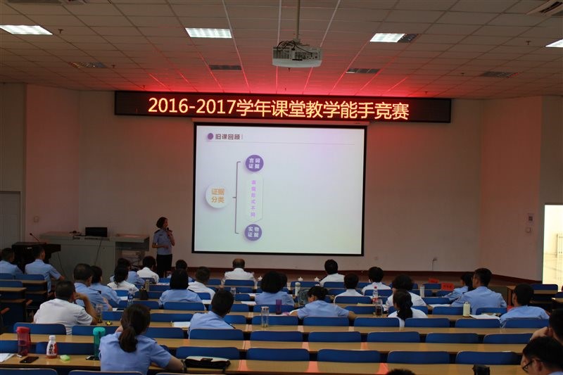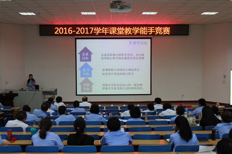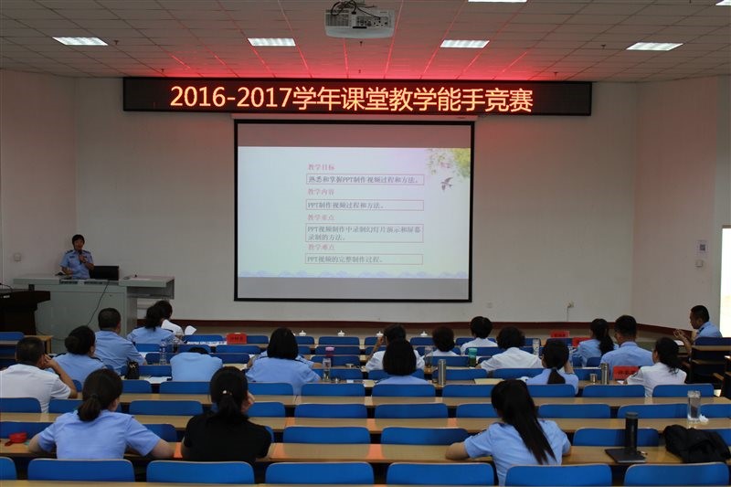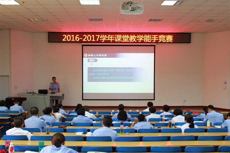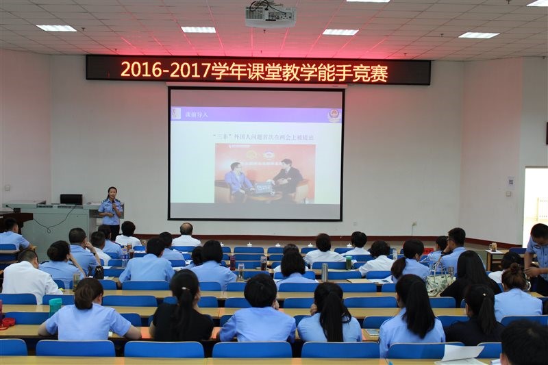 此次课堂教学能手竞赛完全按照公安部教学技能大赛的环节和评分标准进行,由各系、部进行预赛,再参加学院的教案评比和现场教学评比。其中教案占30%,现场教学占70%。教案评比环节中,各位选手从教学提要、教学进程和教学总结三方面对教学目的、教学内容、教学形式、教学方法和教学设计进行了全方位的阐述,教案内容全面到位,制作精美,展现出参赛教师对授课内容的把握程度。现场教学评比环节中,参赛教师能够充分发挥学生主观能动性与个性特长,体现自主、合作、探究的教学理念,教师表现亮点频出,精彩纷呈。参赛教师独特的教学设计、灵活多样的教学方法、缜密的教学环节,呈现出参赛教师扎实的教学基本功和良好的课堂驾驭能力。