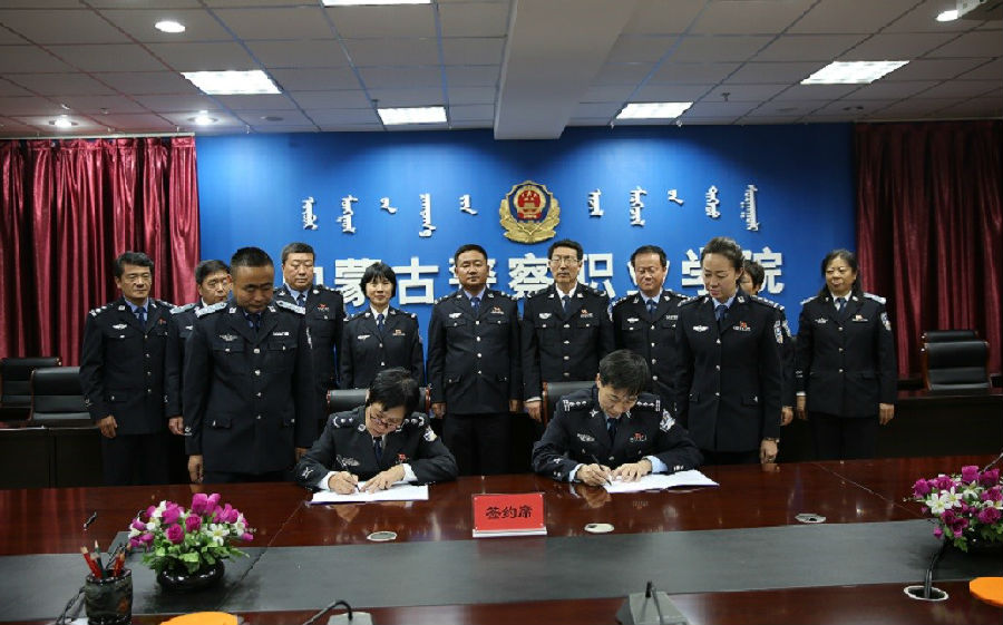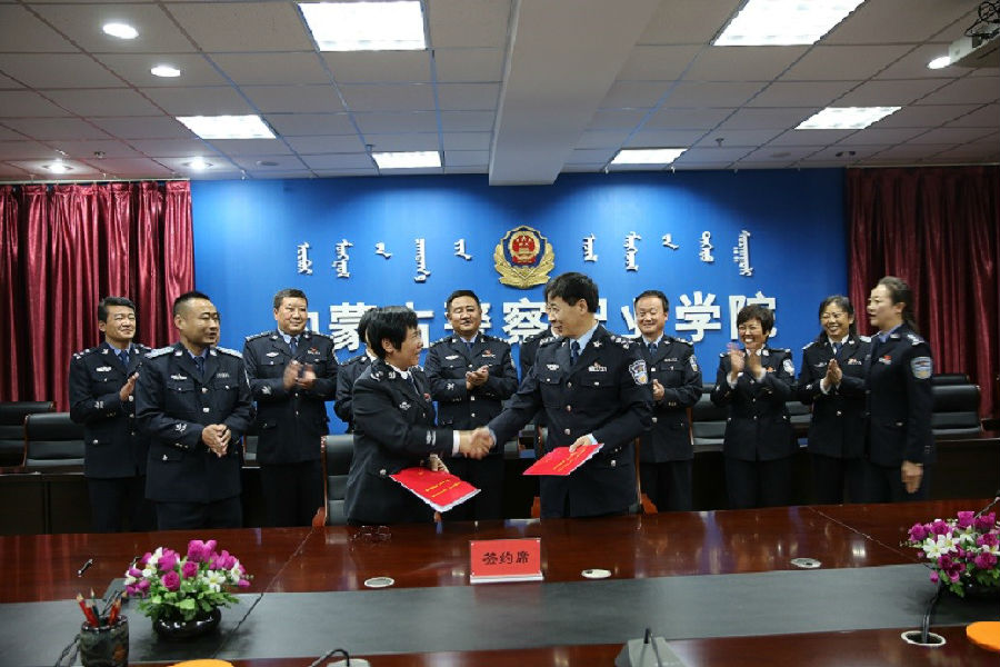 2017年5月12日下午,内蒙古警察职业学院与公安厅机场公安局校局合作签约仪式在我院举行。公安厅教育训练处处长邓忠,机场公安局党委书记、局长毛振海一行4人,学院党委书记、院长舒雅、党委委员副院长郝秀文、党委委员政治部主任陈瑛以及办公室、教务处、成教处有关负责人参加了签约仪式。