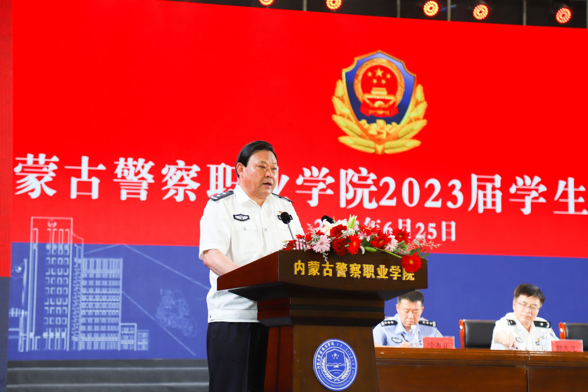 典礼上,唐树仁副主任代表自治区公安厅,向圆满完成学业并将步入工作岗位的警院毕业生致以衷心祝贺和良好祝愿,寄语全体毕业生:一是要坚定理想信念,把忠诚底色擦得更亮,迎接风浪挑战,奋力开创新局,堪担复兴大任。二是要坚持守正创新,把能力本领练得更强,努力成为行家里手、精兵强将、模范表率。三是要勇于“自找苦吃”,在实干担当中更出彩,用满身尘土烙印奋斗之路,用拼搏汗水浇灌青春之花。