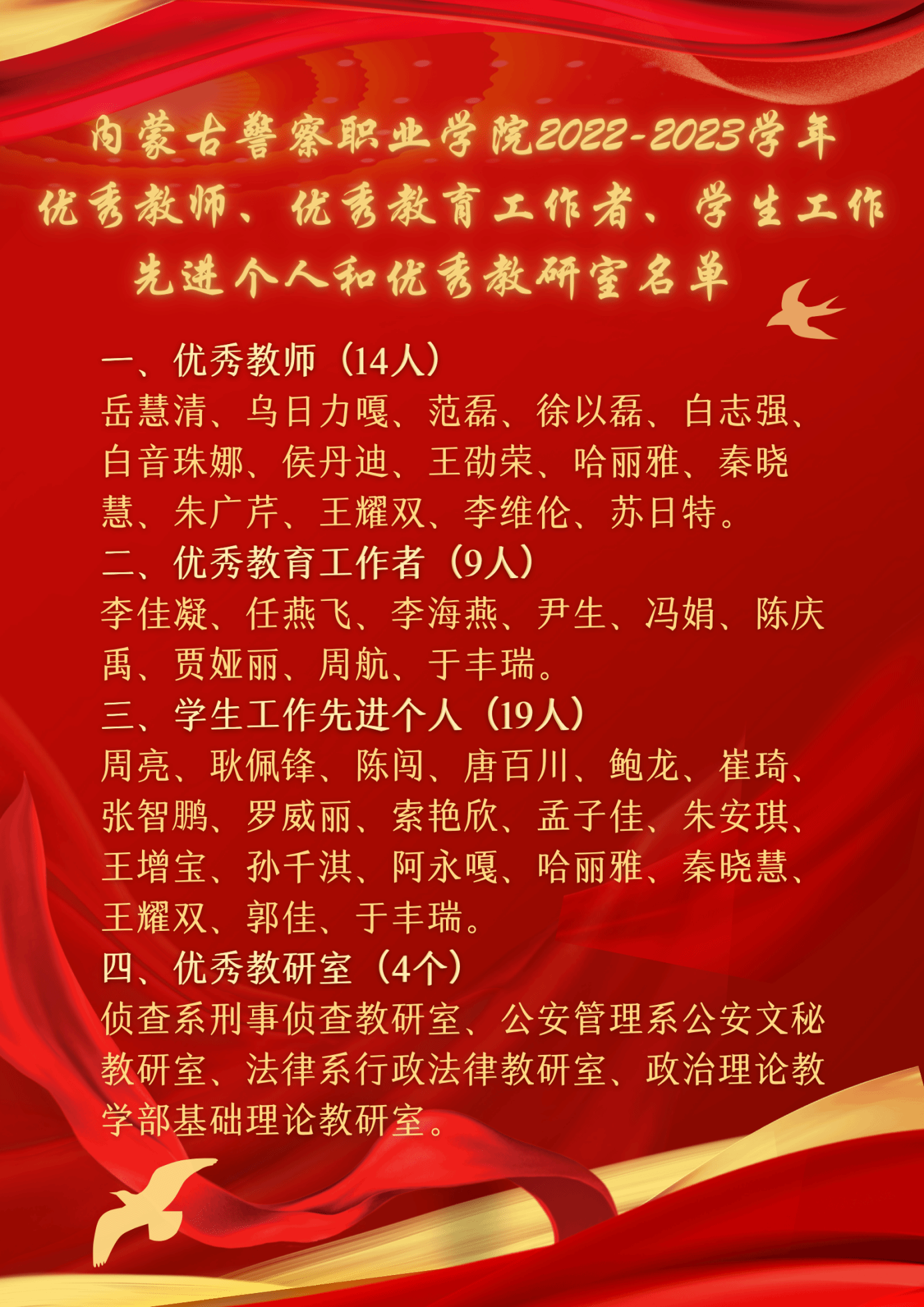 学院党委副书记、政治部主任邢轶清宣读了《关于表彰2022-2023学年优秀教师、优秀教育工作者、学生工作先进个人以及优秀教研室的决定》。