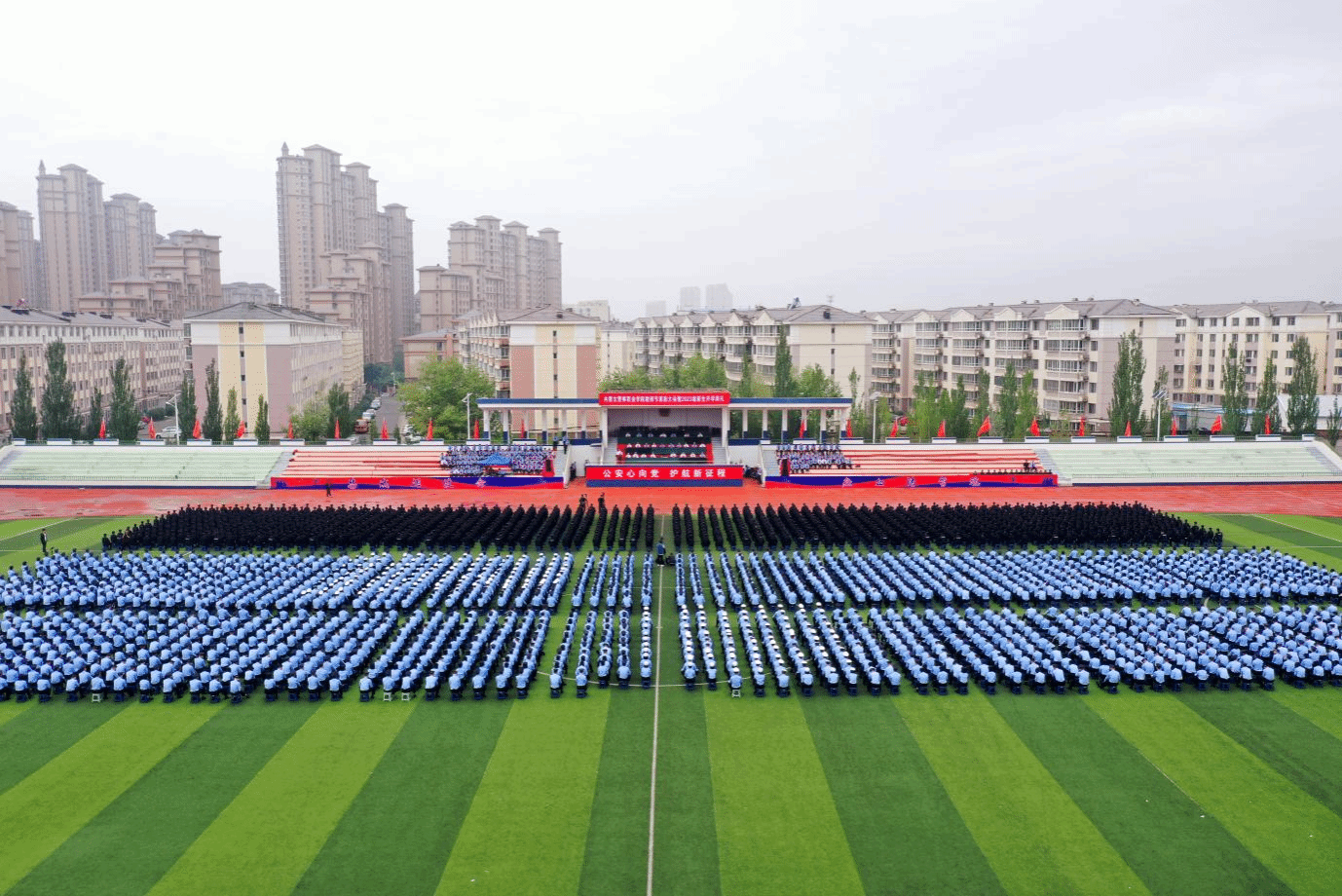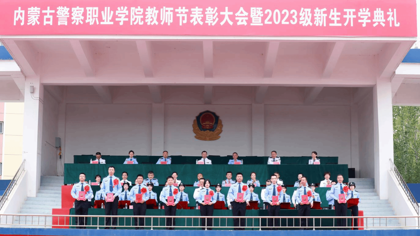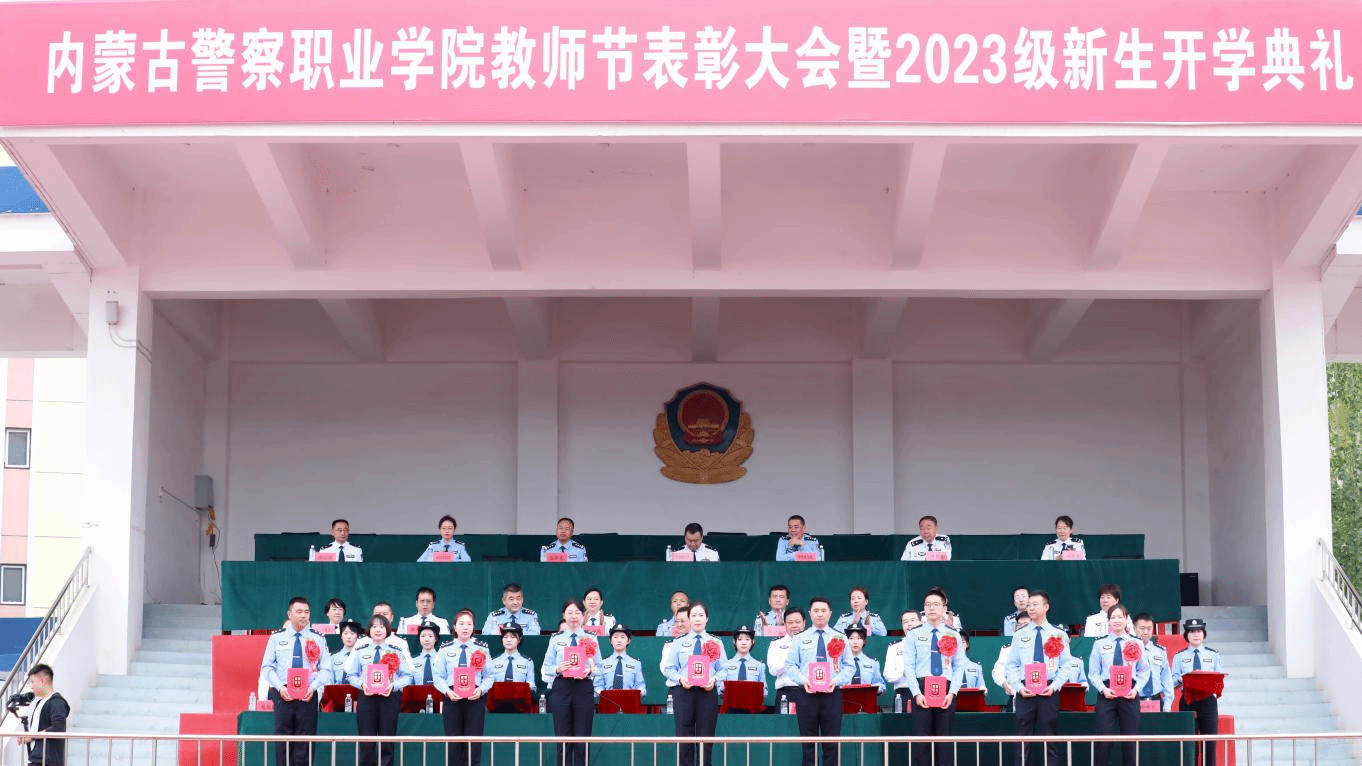 9月8日上午,内蒙古警察职业学院隆重举行教师节表彰大会暨2023级新生开学典礼。公安厅党委委员、政治部主任王斌出席,公安厅综合处处长张磊、学院全体党委班子成员和3000余名师生参加。会议由党委副书记、院长李永林主持。