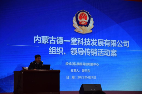 论坛上,裴丹东支队长针对新型传销犯罪的类型、模式、法律释义,结合由公安厅自主研判并领办的内蒙古德一堂科技发展有限公司组织、领导传销案,就传销犯罪的线索发现、模式分析、法律定性、资金特点、人员研判进行系统分析讲解。