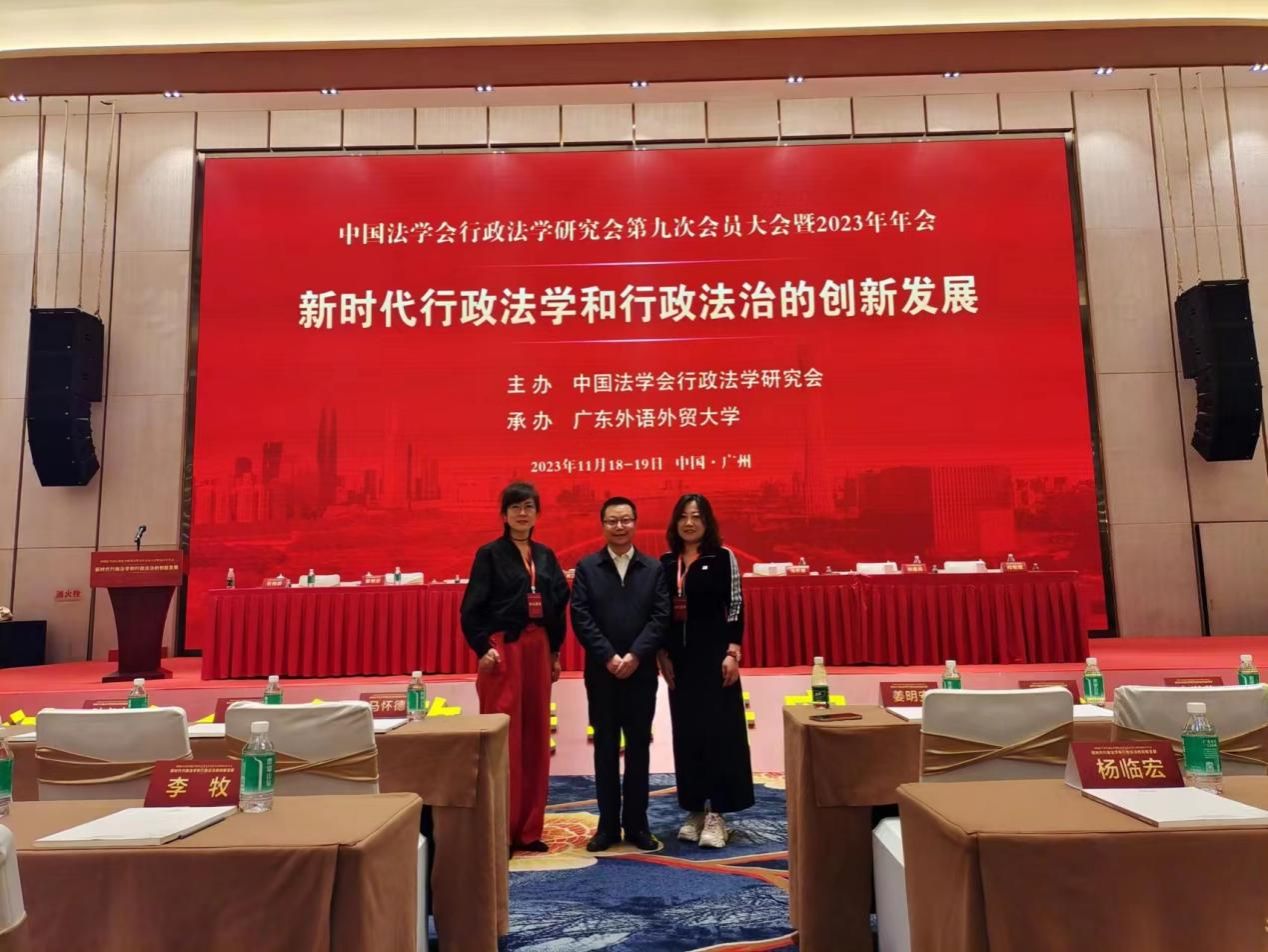2023年11月18日-19日,中国法学会行政法学研究会会员大会暨2023年年会在广州隆重召开。本次年会由中国法学会行政法学研究会主办、广东外语外贸大学承办。全国人大常委会、中国法学会、最高人民法院、最高人民检察院、司法部、广东省委政法委等部门的领导,来自北京大学、清华大学高校和科研机构的专家学者等700余人齐聚一堂,把脉中国行政法治实践,坚守为民服务初心,助推行政法学理论的创新。我院党委副书记、院长李永林教授及法律系迟占霞副教授、唐雅娟副教授应邀参加会议。