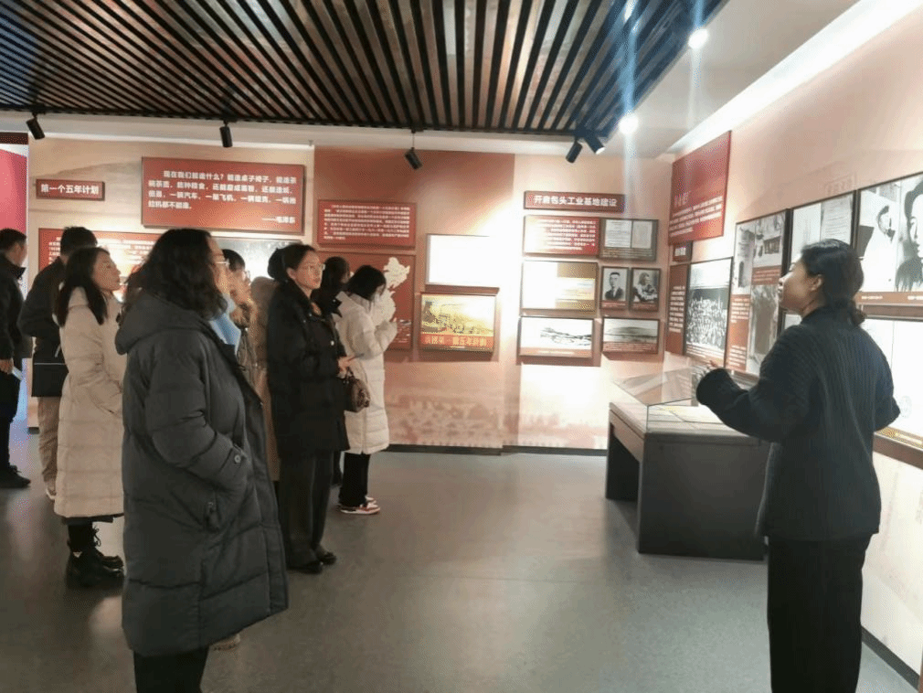 为深入了解“齐心协力建包钢”民族团结的历史佳话,会前,双方教师共同来到包钢会展中心,参观了“铸牢中华民族共同体意识,齐心协力建包钢”主题展览,进一步了解了包钢的发展历史和成就。