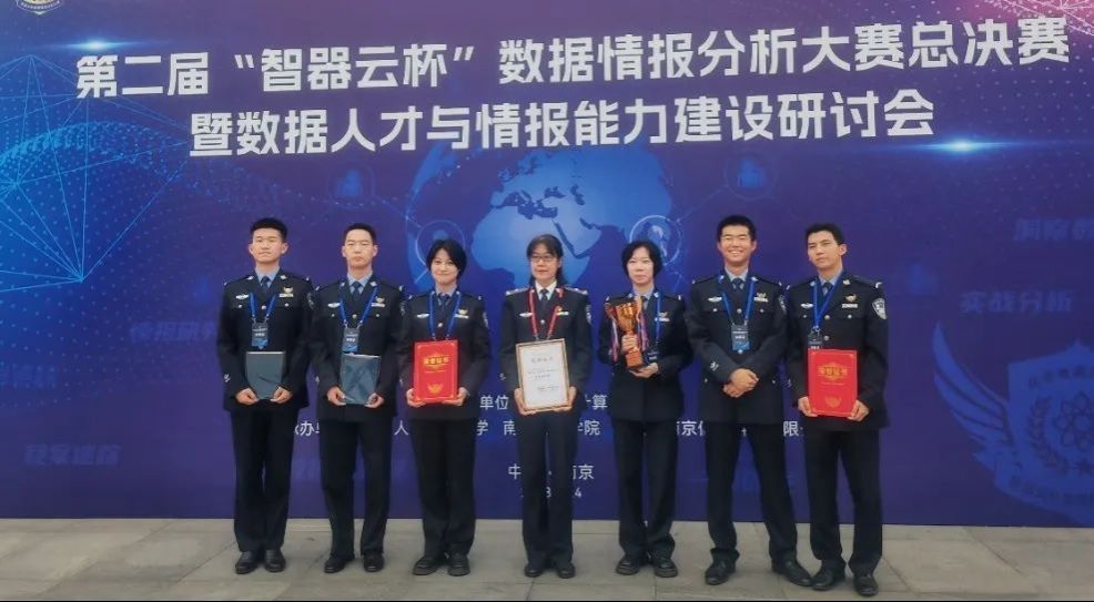 本届“智器云杯”数据情报分析大赛共有来自中国人民公安大学、中国人民警察大学、中国刑警学院等全国公安类院校33 所、33 个专业,初赛人数1500余人。经过激烈角逐,230 名优秀选手在南京警察学院参加总决赛。总决赛围绕“模拟案件”进行数据情报分析研判,我院参赛的两支队伍团结协作、攻克难关,分获三等奖和优胜奖,学院获优秀组织奖。