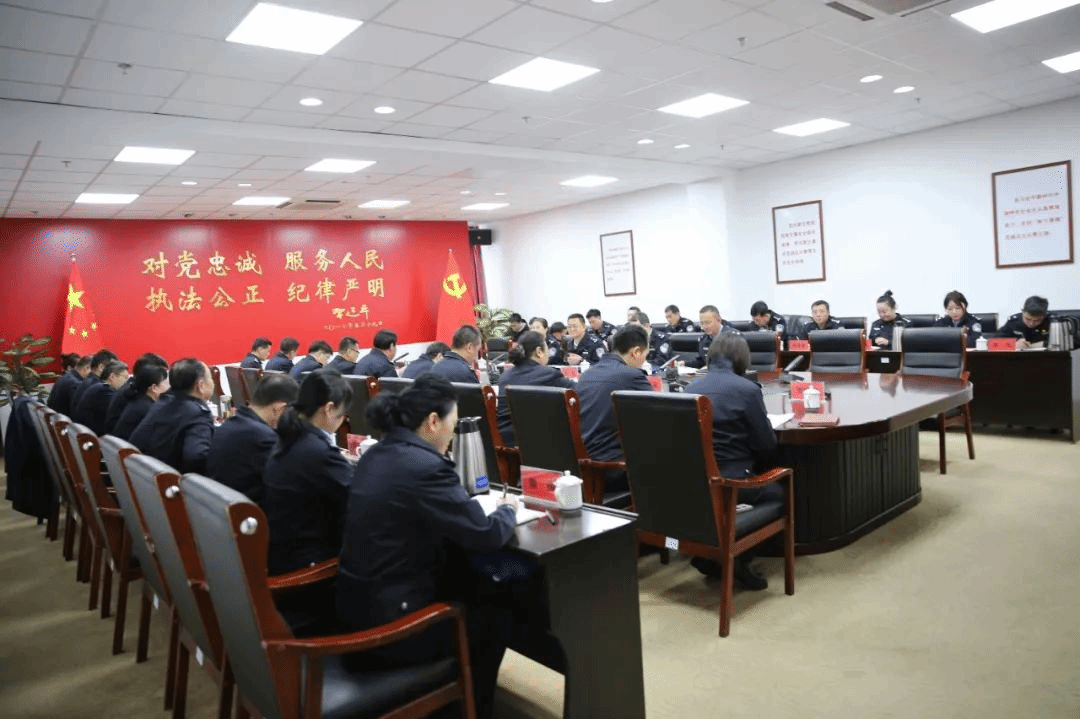 王斌首先代表厅党委充分肯定了警院全体同志在过去一年里取得的成绩,并对今年警院新的发展前景寄予期望。王斌指出,要坚定警院提升办学层次必然成功的信心和决心,在此关键时期,要以“弓拉满、箭在弦”的状态,倾尽全力,形成合力,积极备战。要明确“升本”的核心理念,由表及里,由外延到内涵,通盘考虑评估的基础和条件。王斌强调,要充分挖掘展现学院区别于普通院校和其他公安院校的办学治校特色特点。一是通过对国通语、蒙古语教学的深度介绍,全面展现学院在贯彻铸牢中华民族共同体意识主线和落实内蒙古五大任务中的关键作用。二是突出“1+12”教育训练机制的办学优势,统筹整合盟市训练基地等资源,形成“一体两翼”学历教育和在职培训协调发展格局,打造边境警务、生态警务等特色学科专业。三是充分展现内蒙古公安文化,通过文艺形式和日常训练,展现公安英模精神和公安队伍优良作风。王斌要求,迎评工作要坚持重点突出、各有侧重、相互补充的原则,精细打磨,不断完善,发挥好校友重要作用,全方位展现社会各界对警院提升办学层次的急切期盼。