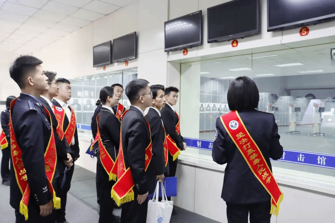 射击馆内,特警专业的学生为代表们进行了枪操表演,并在表演结束后对枪操动作作出细致的讲解,让各位代表们对我院特色警务技能有了近距离的体验与了解,同时也对公安工作的复杂性与危险性有了更深刻的体会。