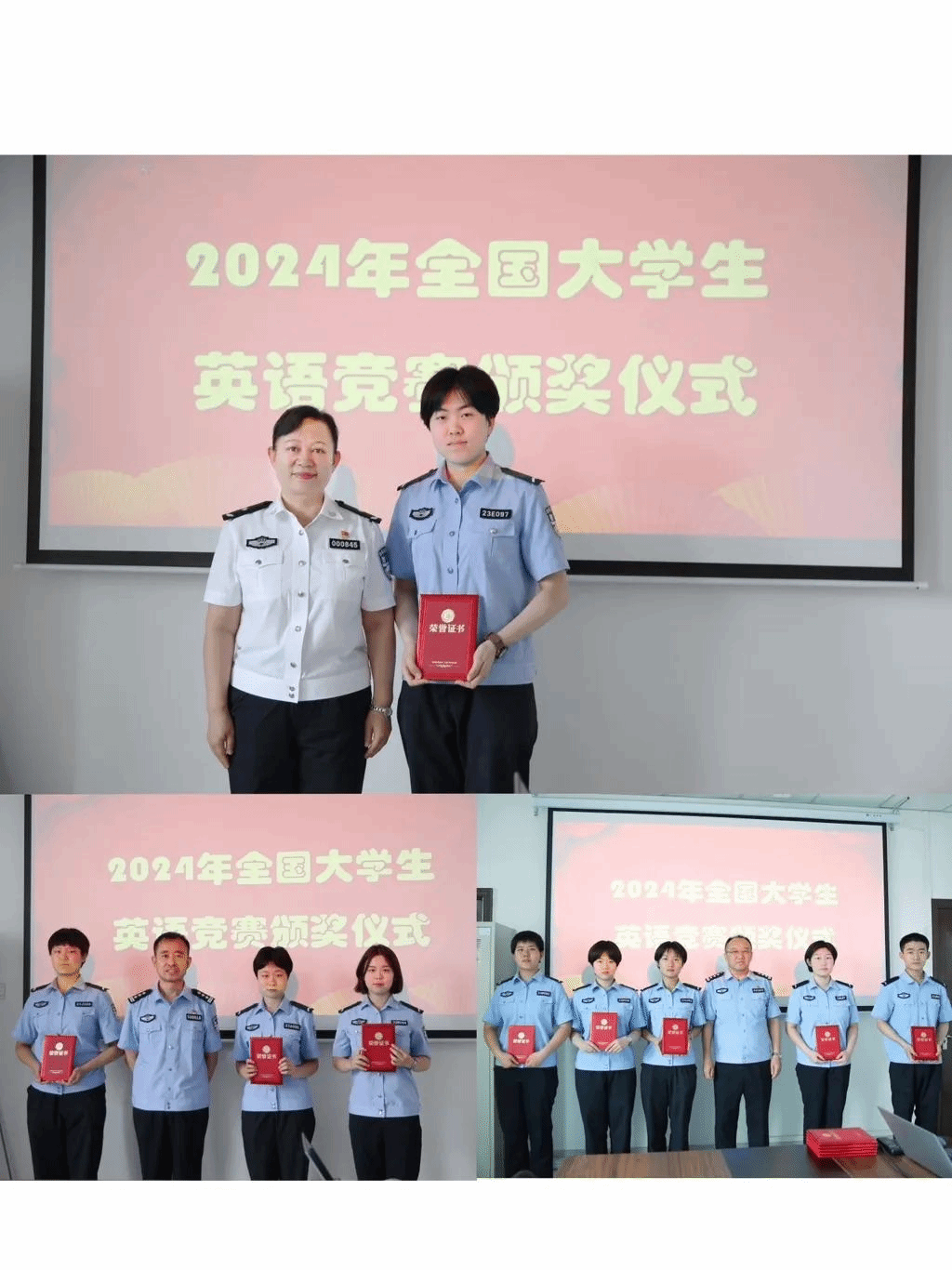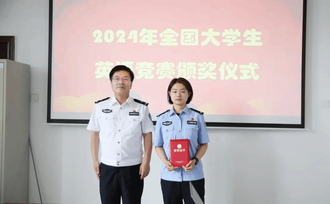 为进一步鼓励先进、提振士气、激励斗志,6月4日下午,学院为获奖同学举行了“2024年全国大学生英语竞赛”颁奖仪式。学院党委委员、副院长、二级巡视员郭志忠出席仪式并讲话,祝贺同学们勇夺桂冠,感谢公安管理系的悉心指导、教务部门的密切配合和同学们的辛勤付出,希望获奖同学以此次竞赛为新起点新征程新航向,努力学习、加强训练,在各种竞赛中磨砺锻炼塑造自己,为今后的从警生涯打下坚实基础。学院教务处处长巩利萍,公安管理系党总支书记邢宏博、副主任乔永平出席颁奖仪式。
