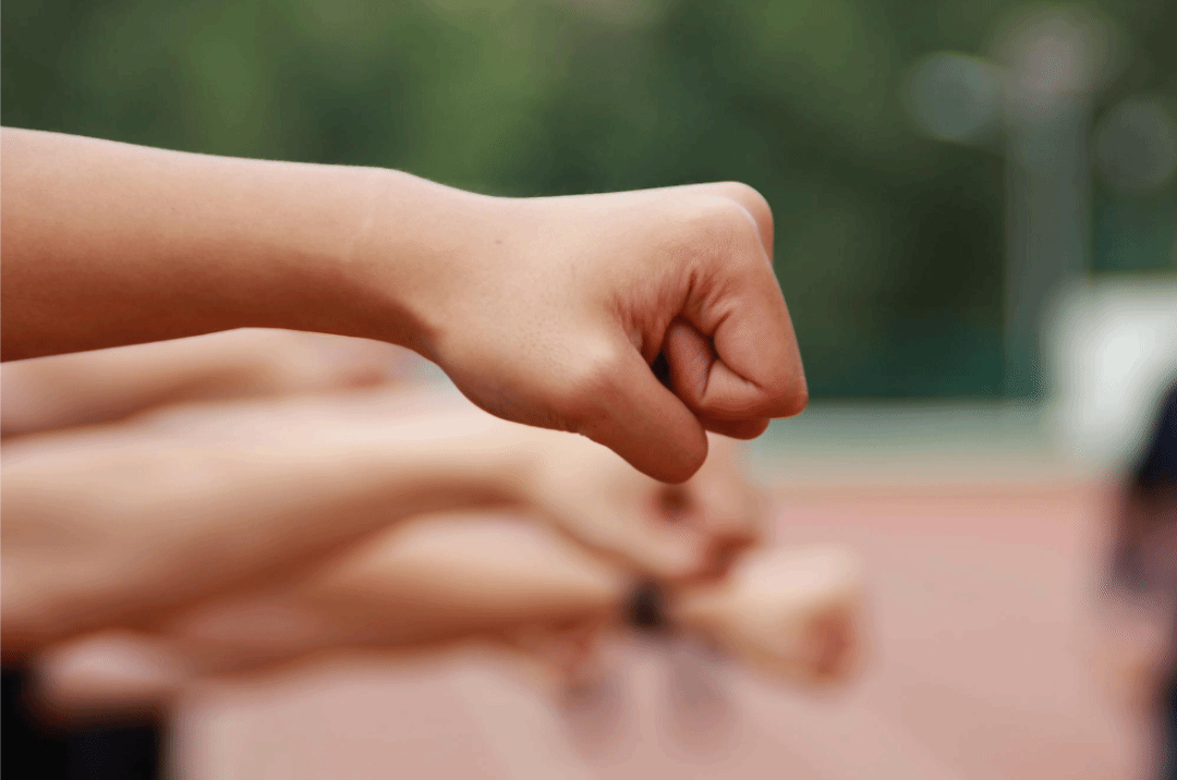 “还记得被雨水渲染的擒敌拳吗?那一天的我们,一遍又一遍,将雨水和汗水挥洒,每一声‘打’‘嘿’都那么地铿锵有力,没有一个人退缩缺席。从那一刻起,有一颗叫做‘集体’的种子在身体里发了芽。”