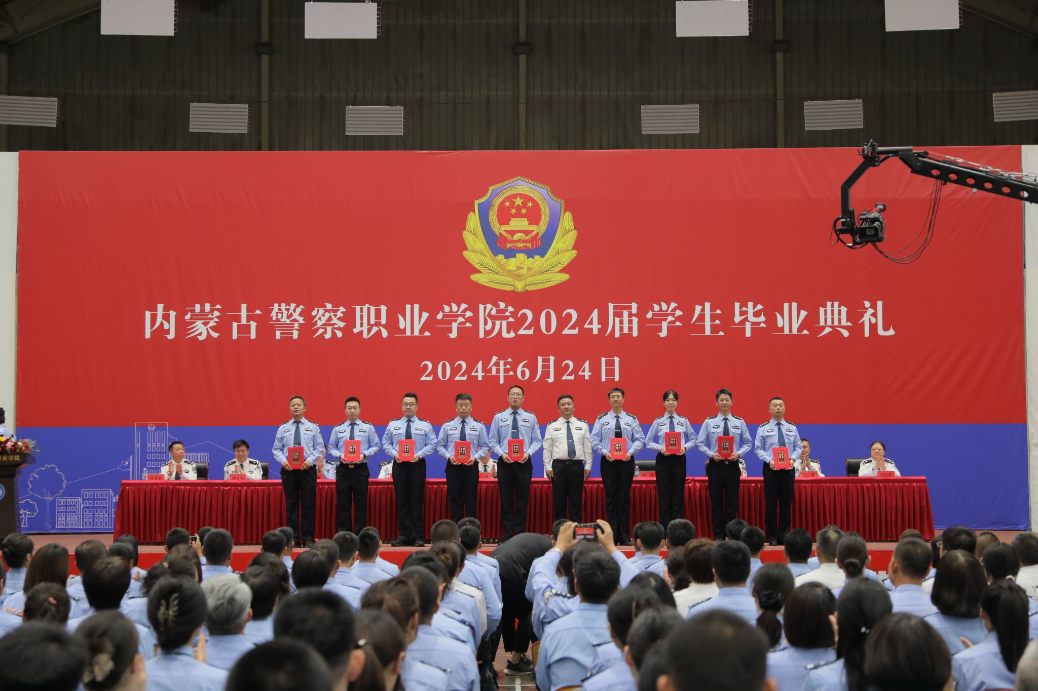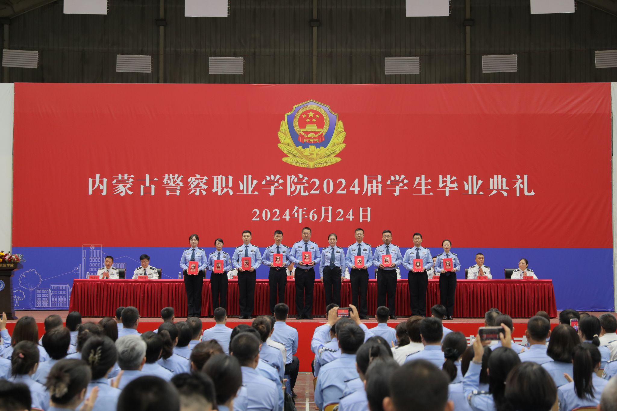 桃李芬芳,情深意长。6月24日上午,内蒙古警察职业学院隆重举行2024届学生毕业典礼。公安厅党委委员、政治部主任王斌出席典礼并讲话,学院党委书记苏和生发表致辞。党委副书记、院长李永林主持典礼,公安厅办公室主任、政治部副主任、机关党委专职副书记邓忠,公安厅人事训练处处长江田,学院党委副书记、政治部主任邢轶清,党委委员、副院长郭志忠,党委委员、副院长刘伟,党委委员、副院长哈布日,党委委员、纪委书记包红颖出席典礼。2024届全体毕业生,在校生代表,实习指导教官代表和全体教职工参加典礼。此次典礼在学院警体馆设主会场,并通过学院视频号进行直播,10.2万人次在线同步观看,点赞35.6万人次。广大师生、家长亲友和校友及社会各界人士相聚“云端”,共同见证这一庄严时刻。