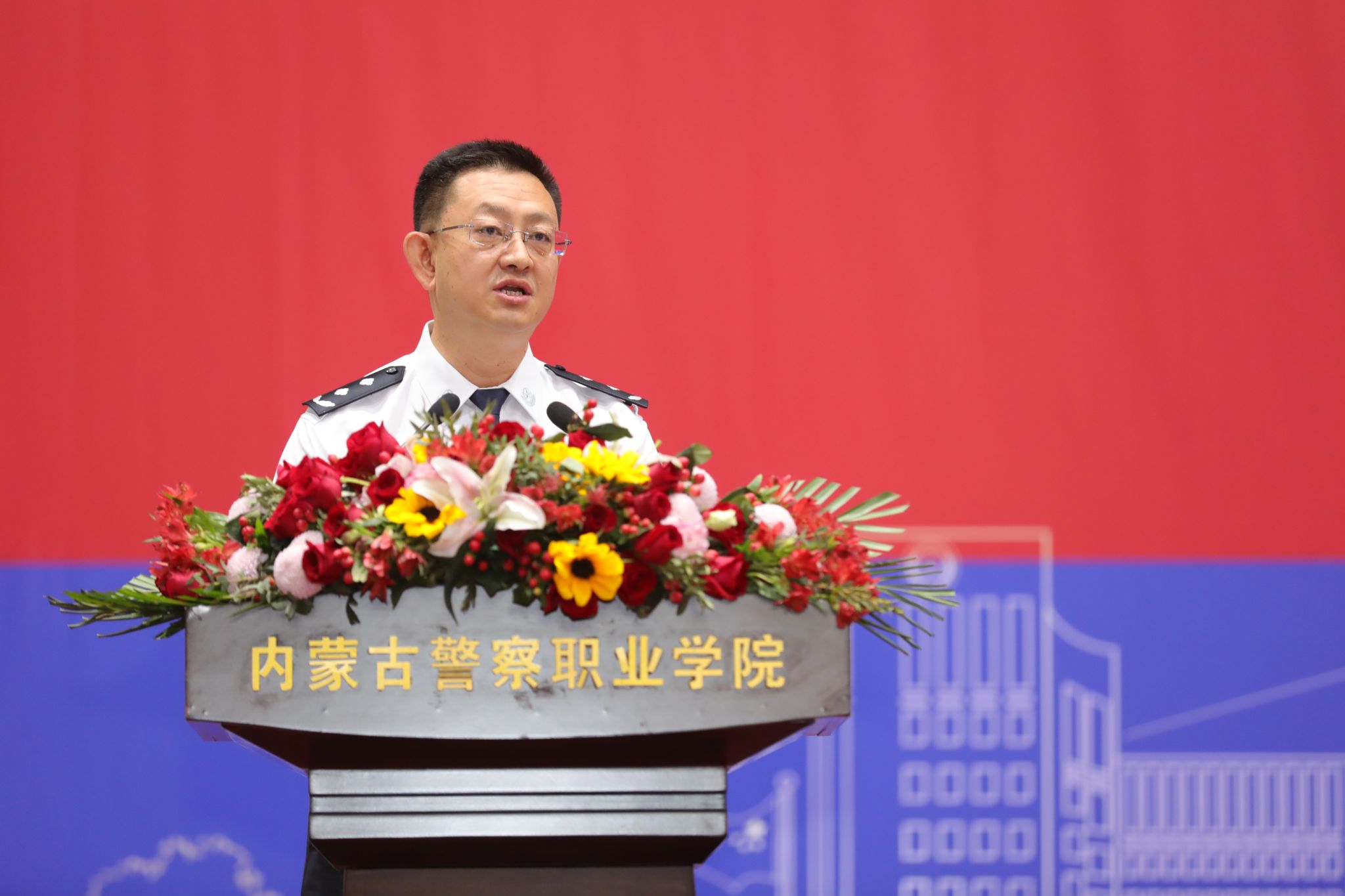 王斌主任代表自治区公安厅党委,向圆满完成学业并将步入工作岗位的984名警院毕业生致以衷心祝贺和良好祝愿,并向学院优秀毕业生代表颁发荣誉证书。