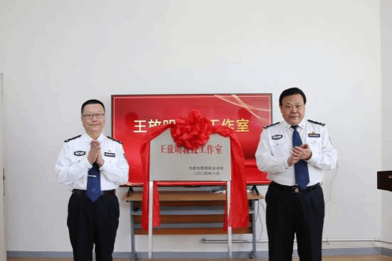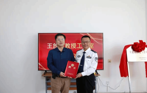 揭牌仪式上,郭志忠副院长宣读《内蒙古警察职业学院关于聘任王放明为客座教授的决定》,李永林院长为王放明颁发客座教授聘书。苏和生书记、李永林院长共同为“王放明教授工作室”揭牌。王放明教授做了表态发言。